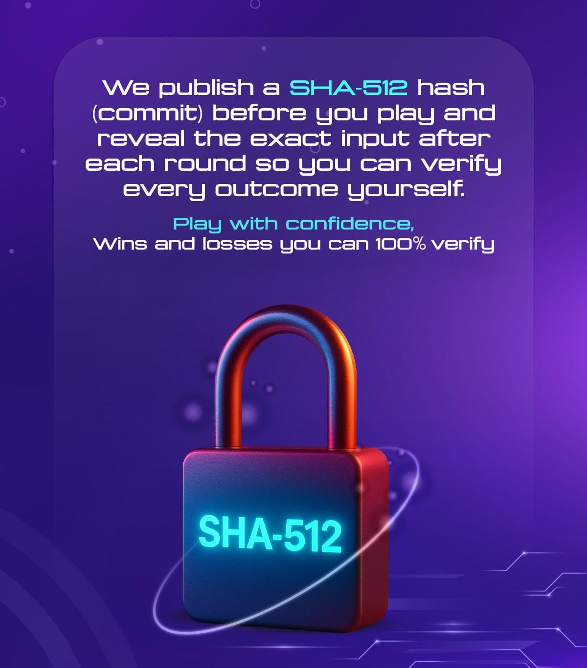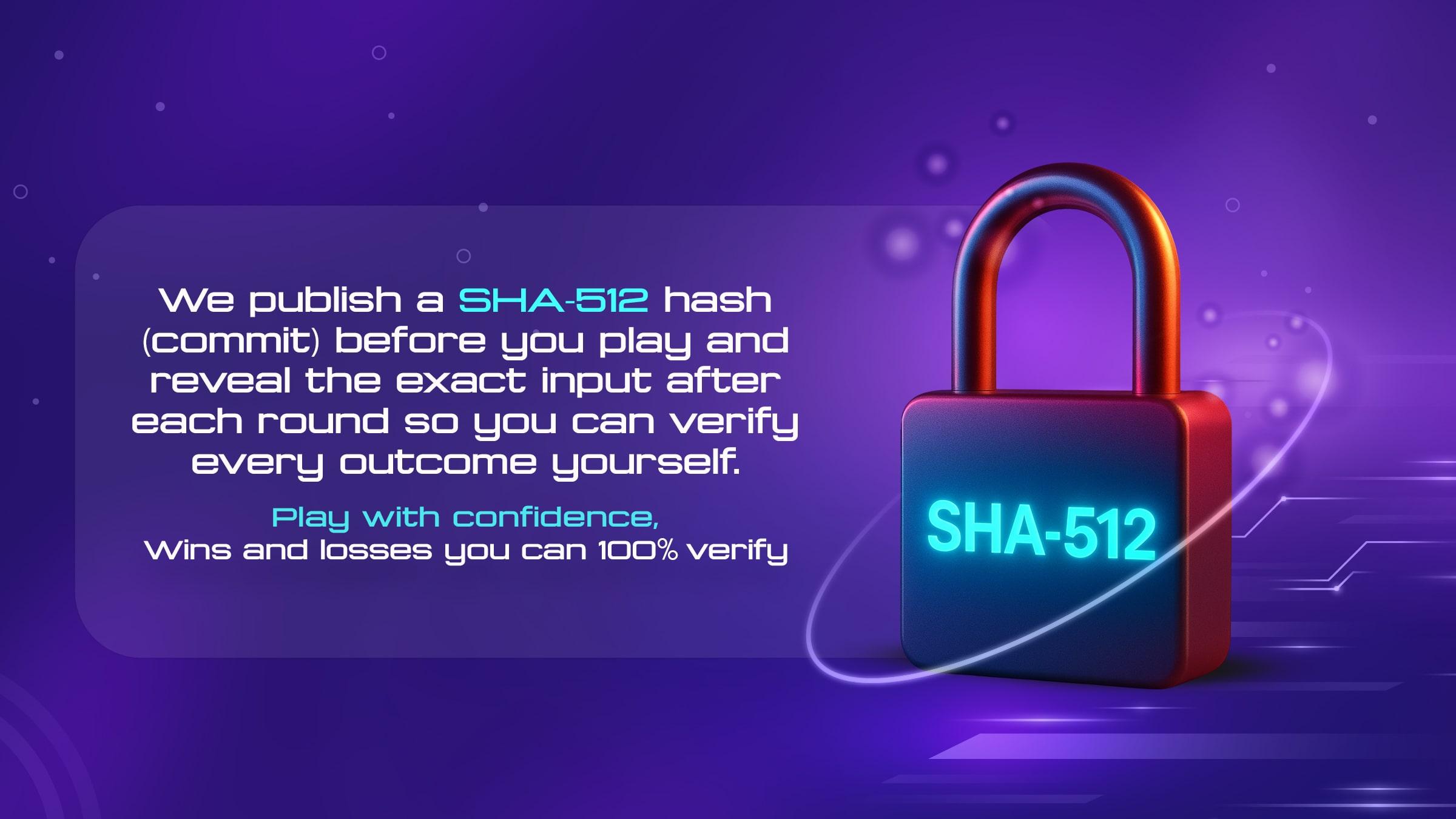 Choose your entry amount, see your odds instantly, and play knowing every result is SHA-512 verified.